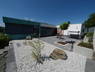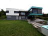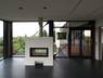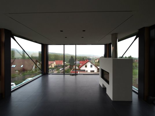 Aus dem schwebenden Wohnzimmer und der Loggia hat man in Richtung Westen einen uneingeschränkten Weitblick auf die Burganlage. Nach Osten ist der Essbereich über große Schiebetüren an den höher gelegenen Grundstücksbereich angeschlossen.