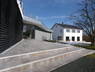 Die Wandverkleidung aus Zink unterstreicht den Entwurfsgedanken des aus dem Terrain herauswachsenden baulichen Gefüges. Streng geometrisch und geradlinig ausgerichtet ruht darauf das Obergeschoss.