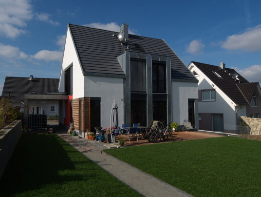 Strenge Planungsvorgaben, wie bspw. Baufeldgröße, Festlegungen zu Dachneigung, Traufhöhe und Einordnung zur Straße, galt es, so auszunutzen, dass ein Wohnhaus entsteht, welches den Vorstellungen an modernes, zeitgemäßes Wohnen gerecht wird; assoziiert mit Großzügigkeit, lichtdurchfluteten Räumen, Galeriebereich.
